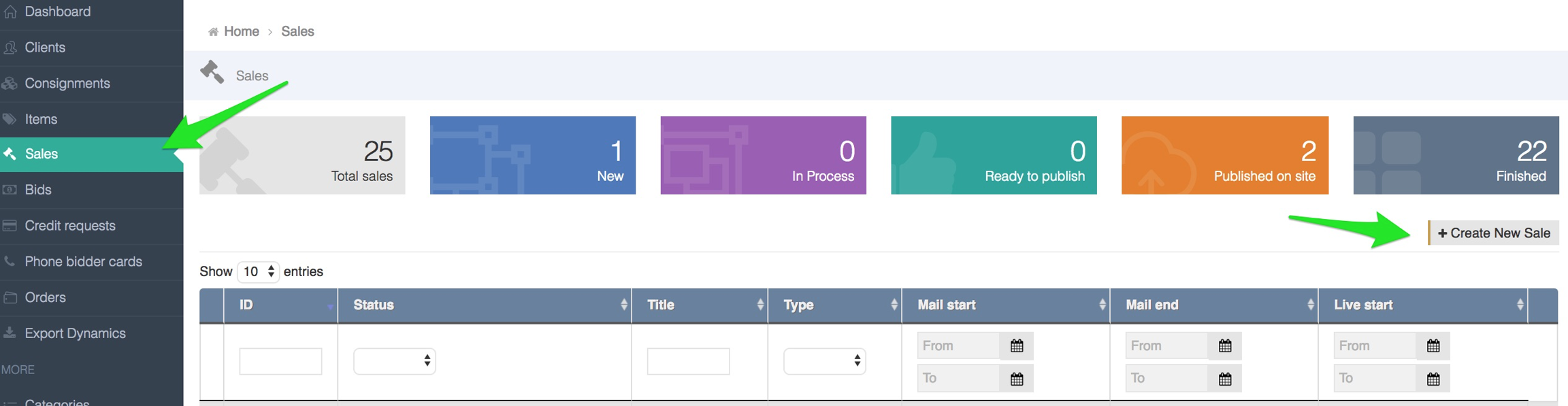 +create new sale