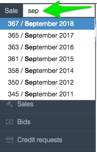 On top of the screen start typing the Sale ID or Sale name and select the desired sale from the autocomplete list.