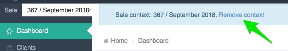 It is recommended to always work with a Sale context, but if for some reason you want to remove the Sale context, just click on Remove context. Note that when removing the sale context, some of the data won't display correctly.